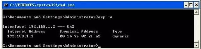 ② arp -a IP:如果有多个网卡,那么使用arp -a加上接口的IP地址,就可以只显示与该接口相关的ARP缓存项目。