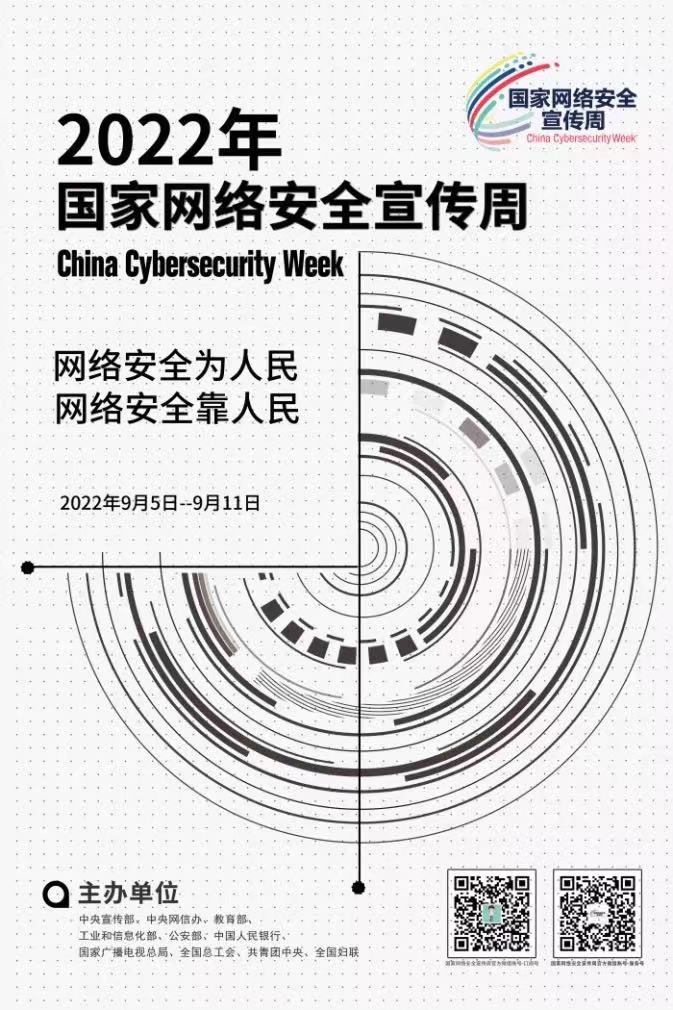 9月5日-9月11日 为国家网络安全宣传周 今年的主题是 “网络安全为人民 网络安全靠人民”
