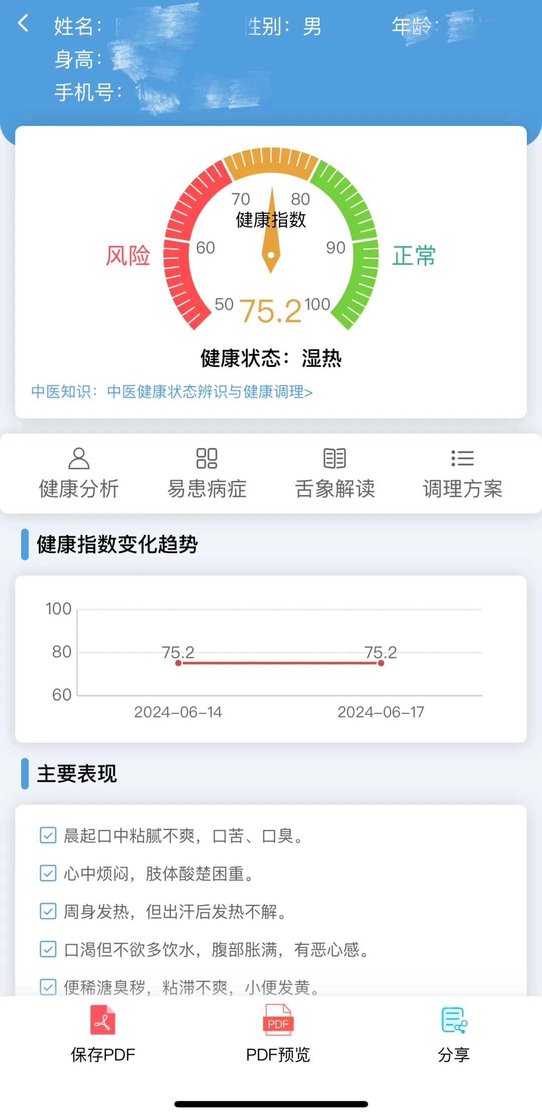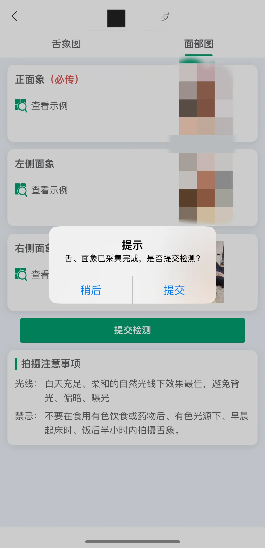 用户拍摄舌头及面部照片,平台在10秒内即可进行106种常见中医健康状态分析,根据体质状况生成个性化调理方案,指导用户精准调理、精准养生,体现“因人制宜”的中医体质理论,适用于普通民众的中医健康状态体检。