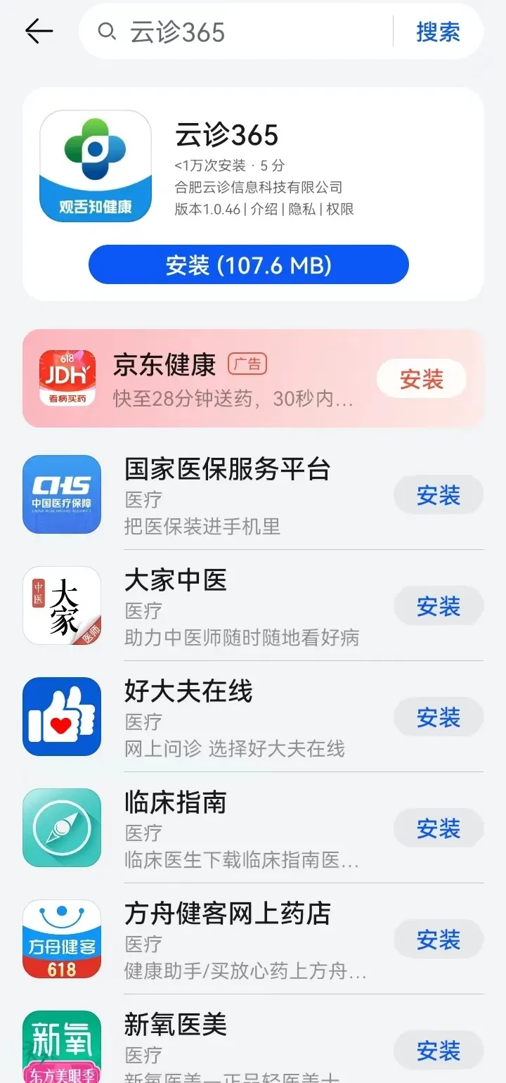 从手机“App Store”中搜索“云诊365”,下载打开。