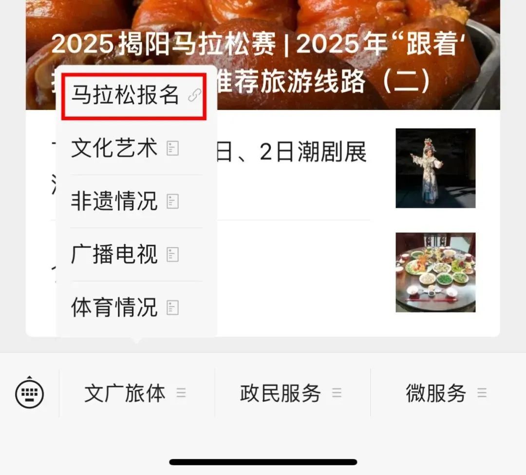 微信报名:搜索并关注微信公众号“发现揭阳”,点击进入点击下方菜单栏中的“赛事报名”。