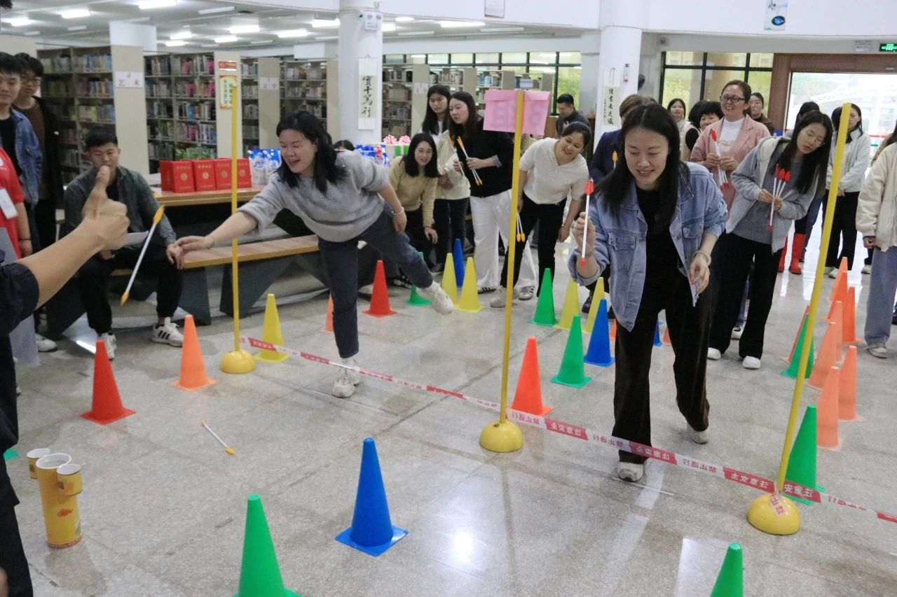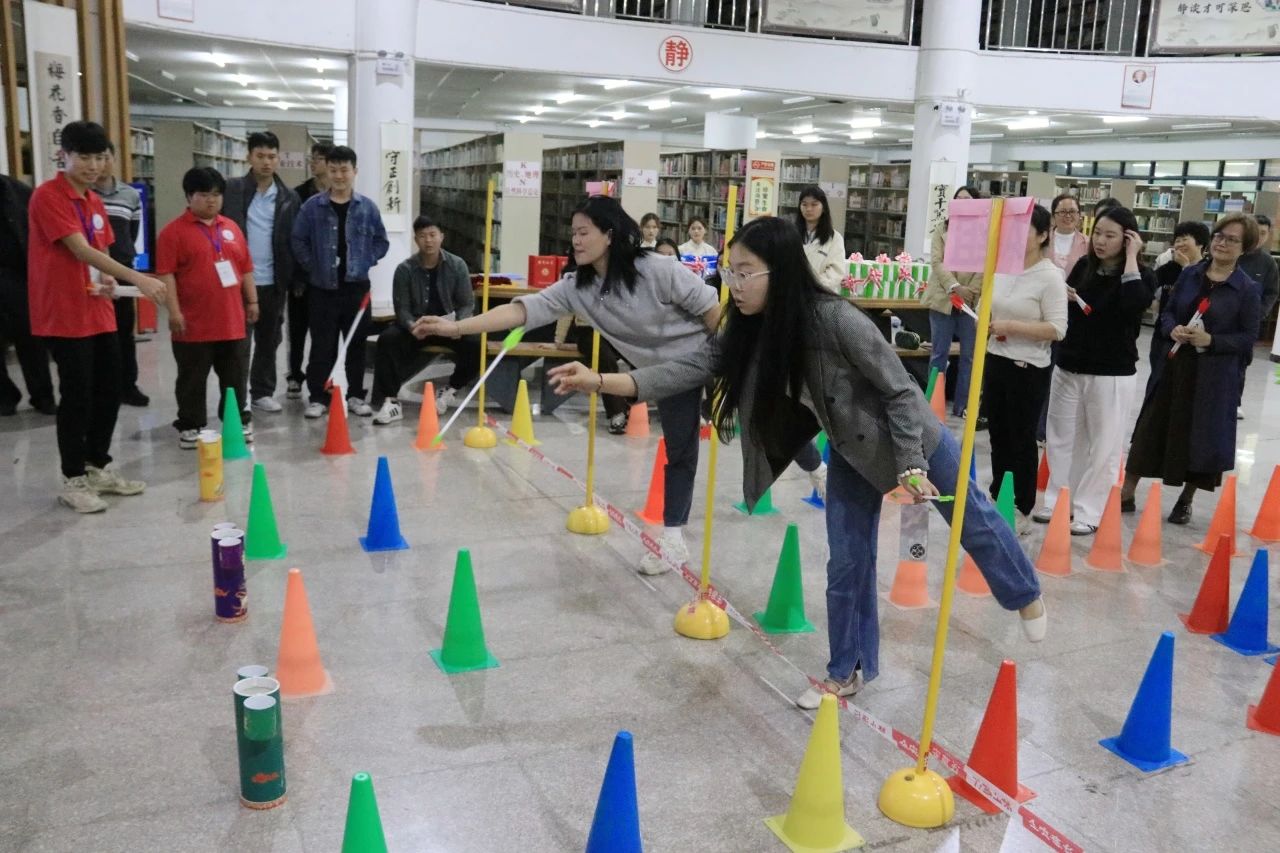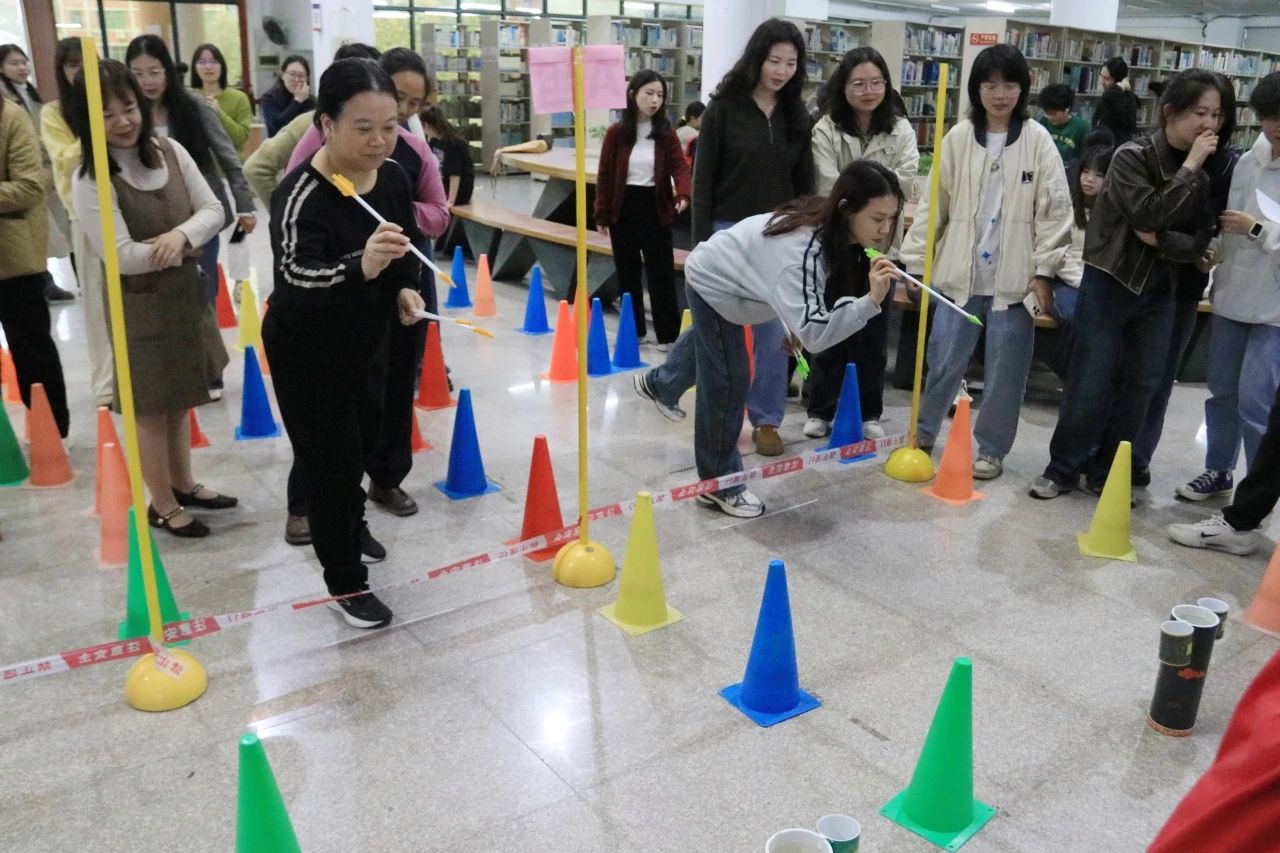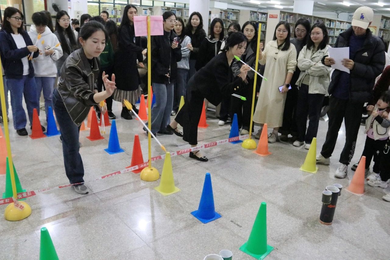活动当日,天气虽细雨绵绵,图书馆内仍充满了欢声笑语。女教职工们暂时放下工作的忙碌,以轻松愉悦的心情迎接这场特别的运动会。投壶作为中国古代传统的礼仪和宴饮游戏,兼具趣味性与技巧性,深受大家喜爱。